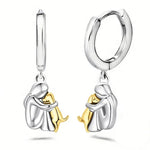 Estos espléndidos pendientes con el motivo único de una niña abrazando a su perro simbolizan el amor puro y la amistad incondicional. Realizados en elegantes tonos de plata y oro, son perfectos para quienes aprecian a sus amigos peludos.